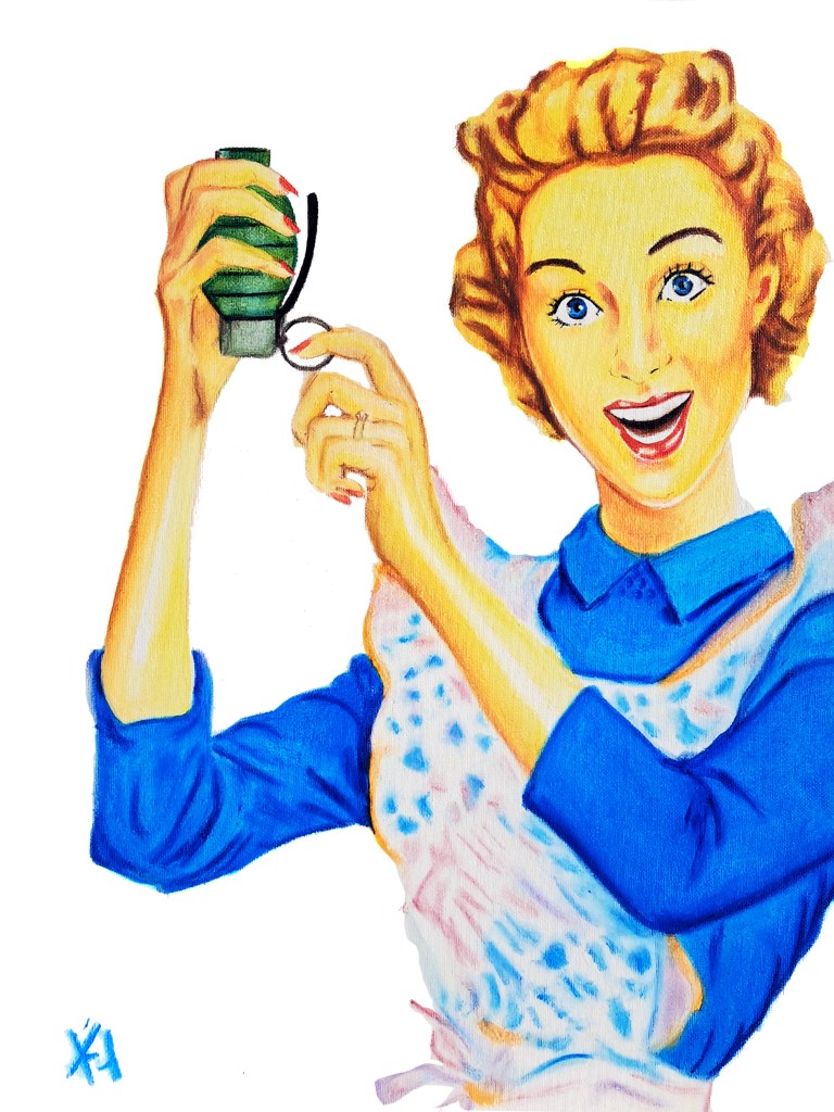 On y trouve des réinterprétations de publicités des années 50 dans un geste critique mais poétiquement assumé.